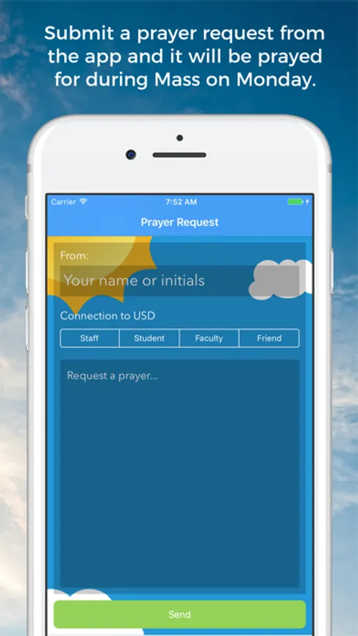 - Submit a prayer request from the app and it will be prayed for during Mass on Monday.