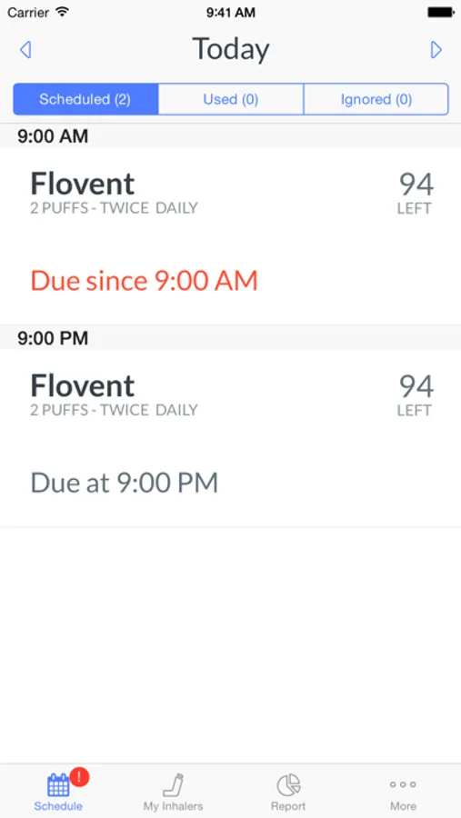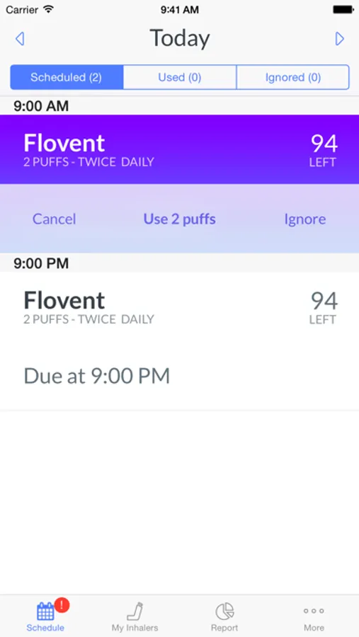View today's schedule to see when your inhalers are due, or view schedules for other days.