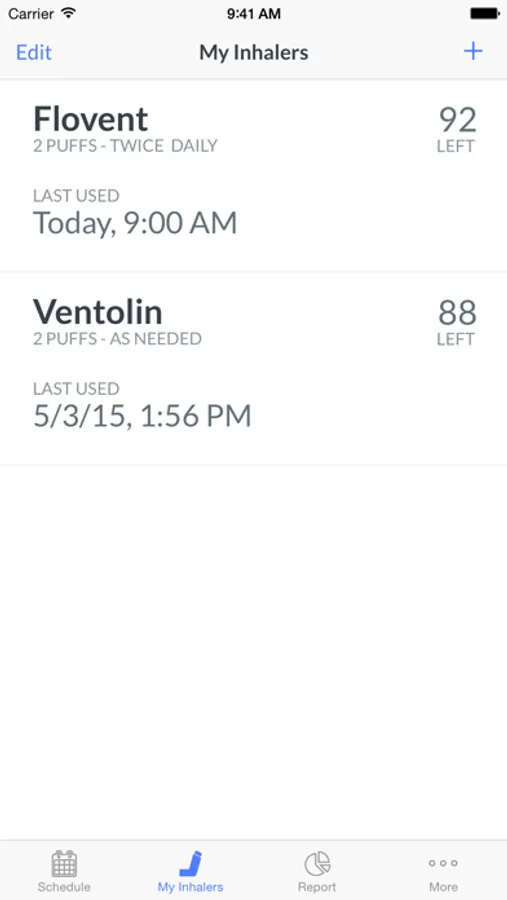 Inhale is fully integrated with the Health app, and can submit your inhaler usage.