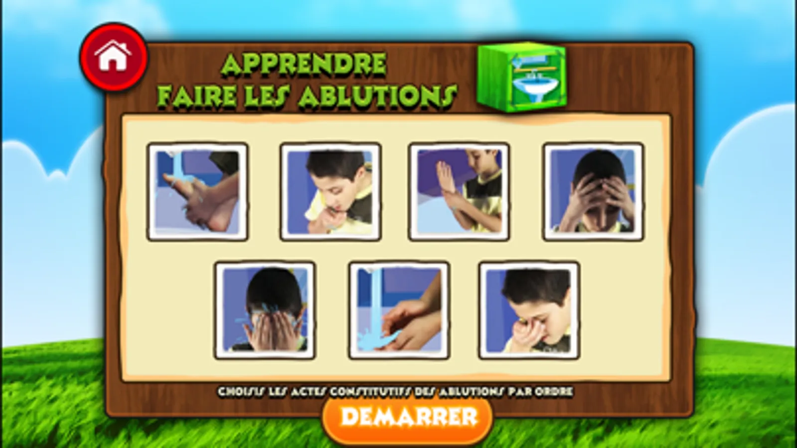 exercices qui permet à l'enfant de faire des exercices sur les gestes de la prière et les actes des ablutions,