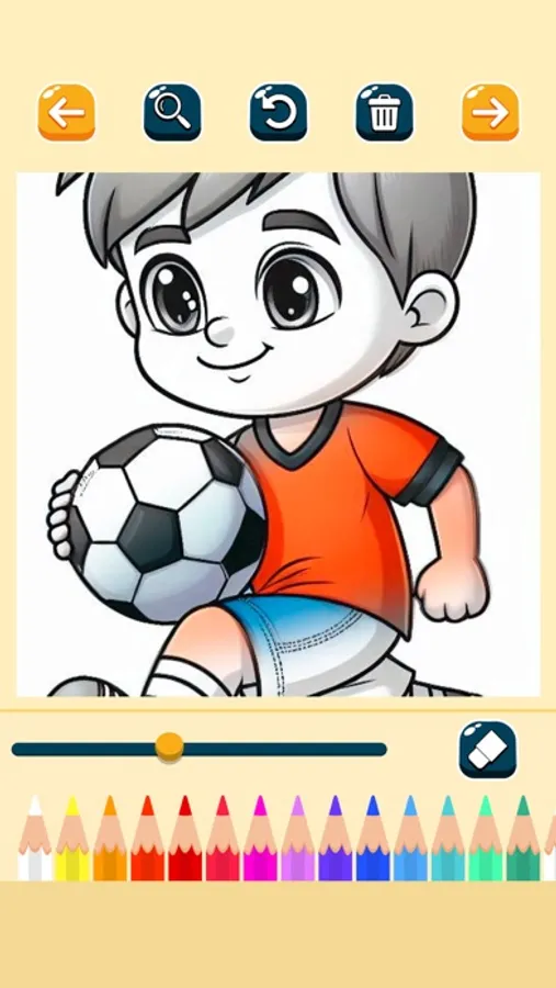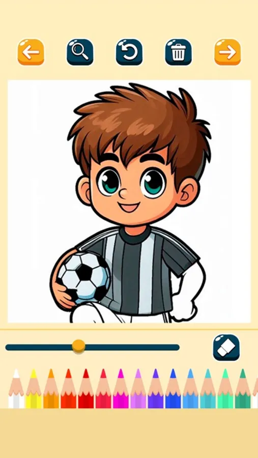 Kids will love to color drawings of the king of sports: images of the goalkeeper and the referee, kids kicking the ball or even their favorite players. The ones that won the world cup! This game is for both boys and girls. Football is for everyone!