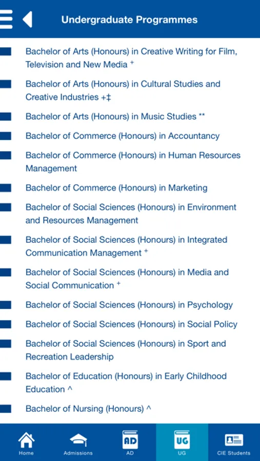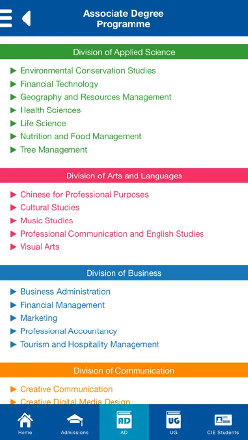 ‧Programmes – Search for the information of Associate Degree and Undergraduate programmes