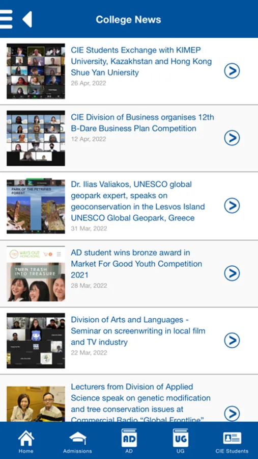 ‧Gallery – Watch CIE videos highlighting college life, and look through college events and campus photos