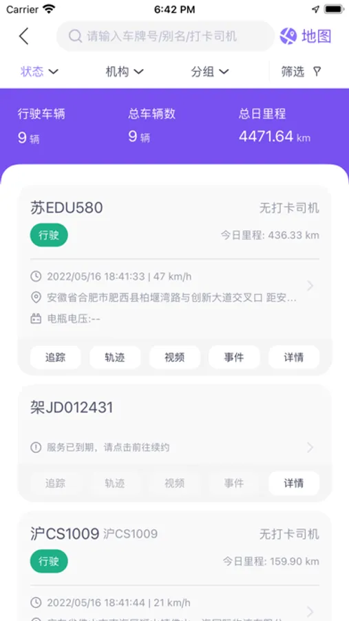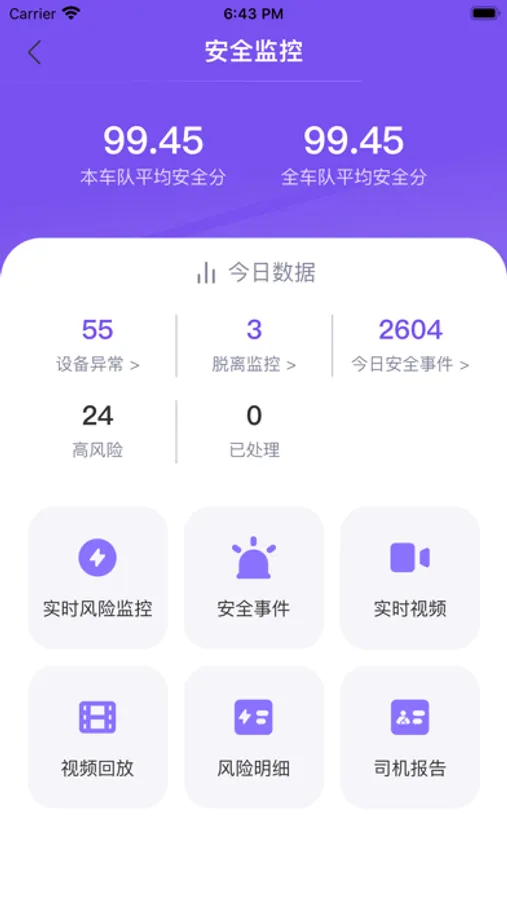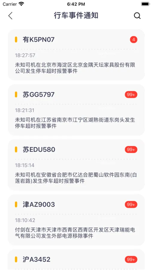 7*24小时主动推送车辆信息,告别连环call,指尖一划,车辆情况全知晓,真正做到身心解放,管车无忧,车辆停车、熄火、怠速、进出市,30+车辆状态、安全状态项,准确感知车辆急转弯、急减急加速等危险驾驶行为,您可以更加了解司机驾驶风格,识别安全风险。