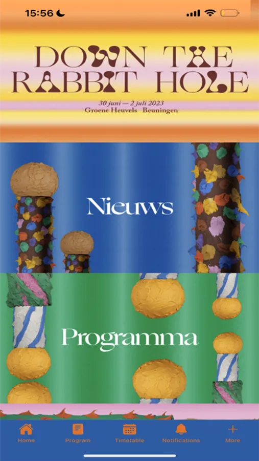 Discover your new favorite artists in the Down The Rabbit Hole 2023 app. Stay up to date on program announcements and updates, search for caterers and find the answer to your questions in the FAQ. The timetable is also available in the app.