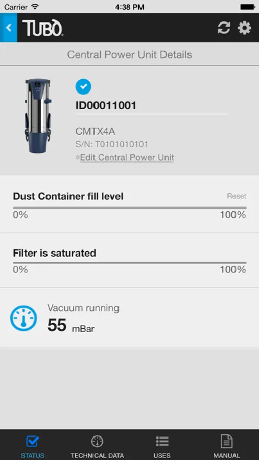 - View the technical data of your central vacuum units, also in real time