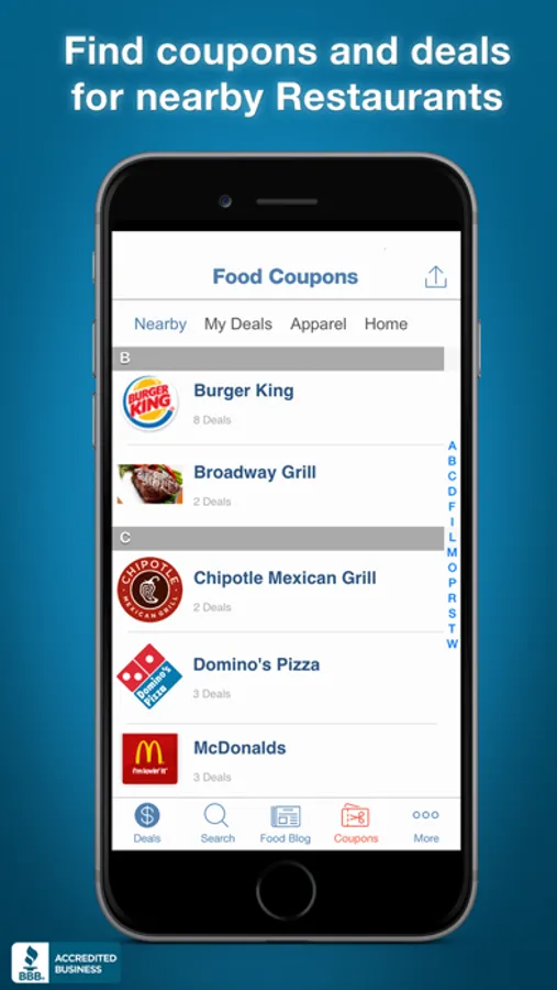 Get access to deals on Groupon, Grocery Coupons, Restaurant.com, and more, all in one convenient app