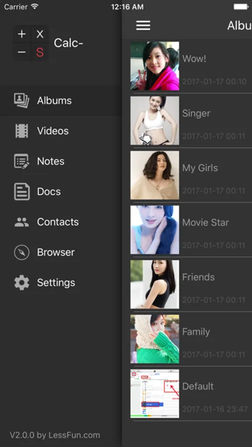 SafeCalc is a private file manager can be the perfect way to protect your privacy, hide your private photos, videos, notes, documents or contacts. On the surface this is a standard calculator, enter the password on the calculator then press 'log' to access your private documents, safe and convenient.