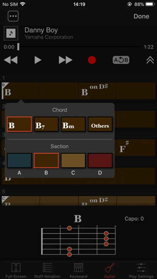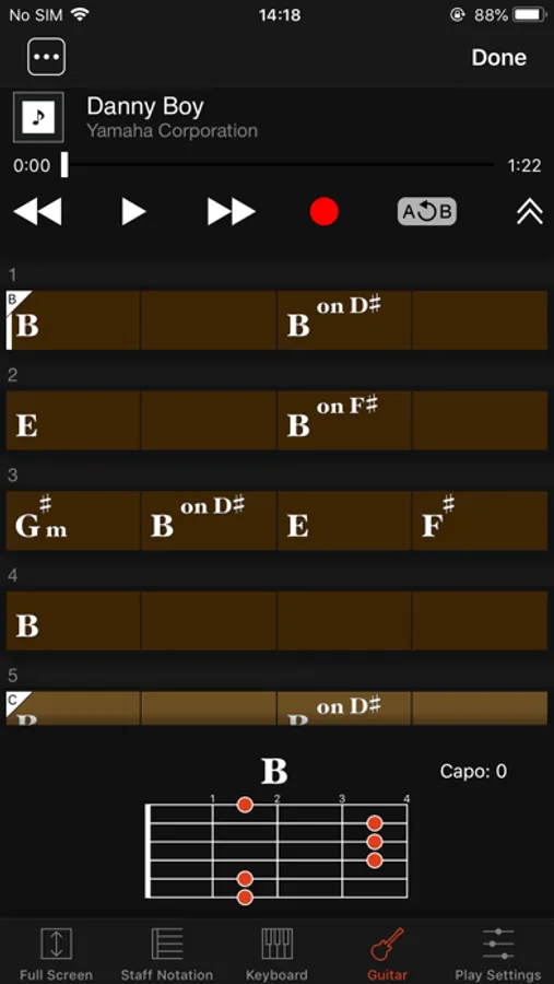 The Yamaha Chord Tracker app for iPhone/iPod touch/iPad helps you practice and perform songs by analyzing the audio songs stored in your iOS device and then displaying the chord symbols for you.