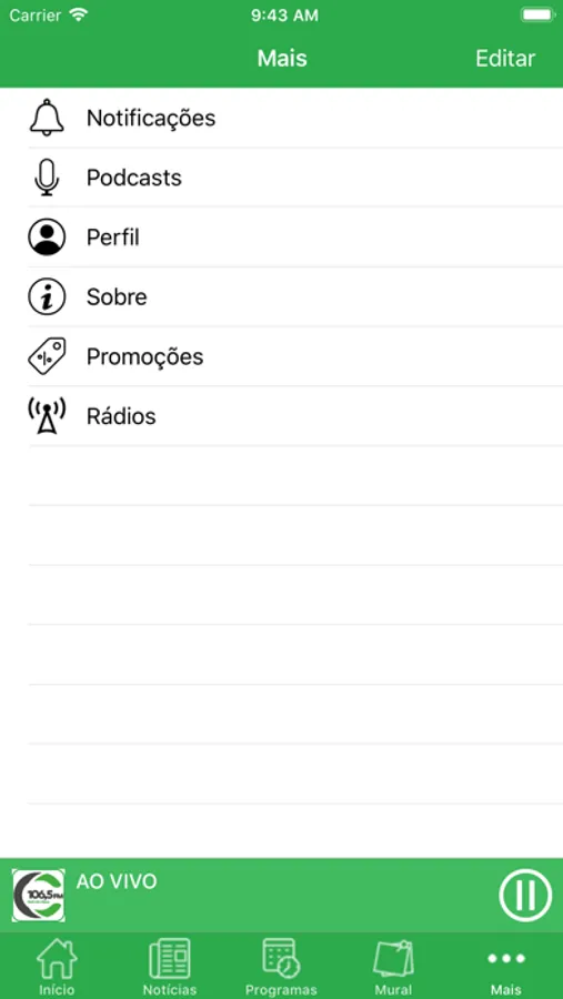 - Ouvir a programação da Rádio ao vivo