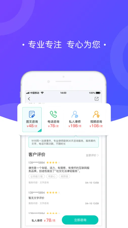 4、平台业务全:从文字咨询、电话咨询、视频咨询、文书服务到线下案源对接,一应俱全;