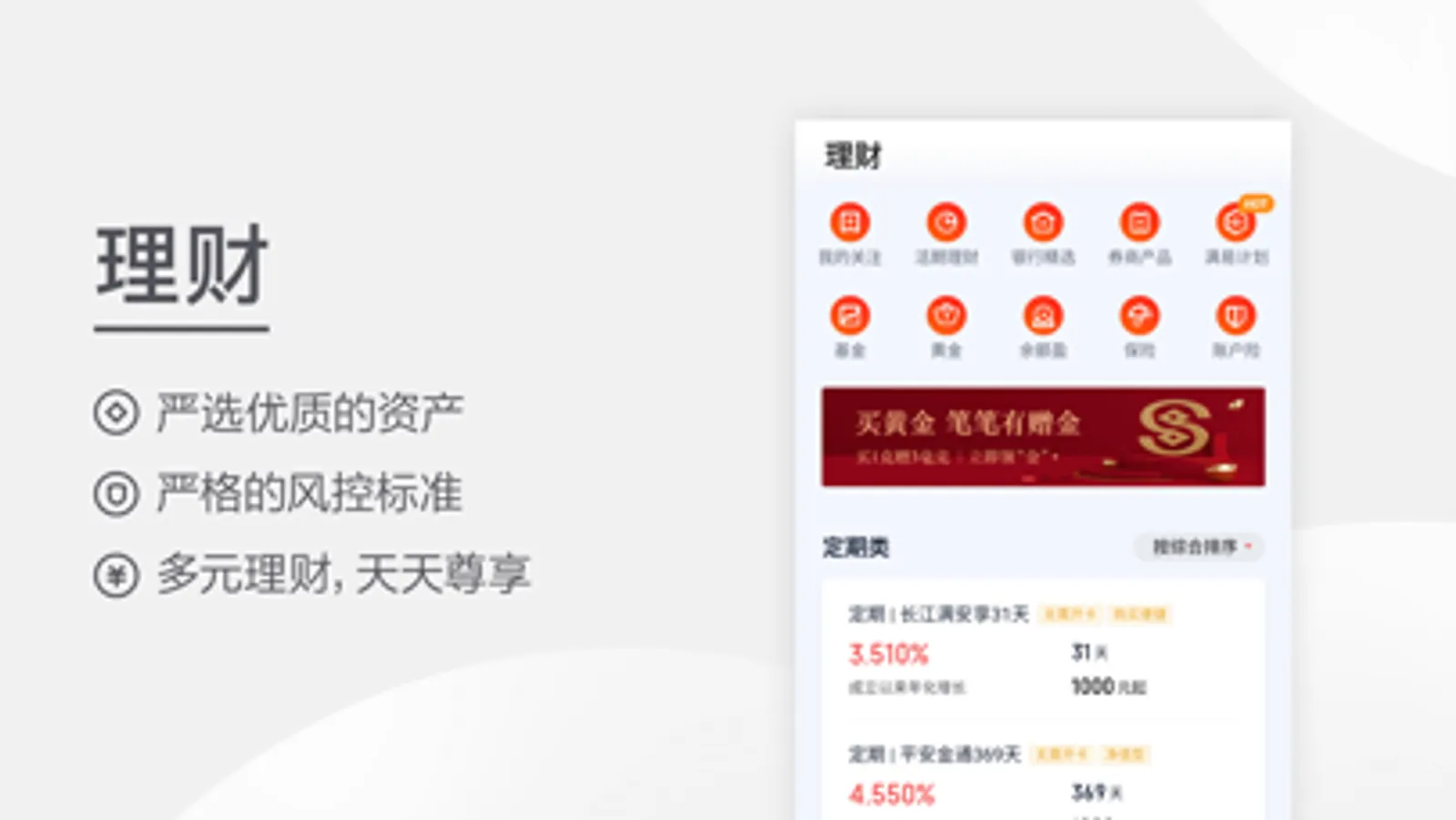 定期理财:起投金额低,年化收益可期,产品持续上新。