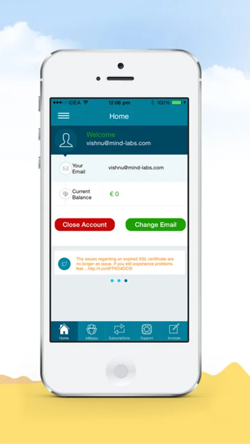 Quick access to features like Raising support tickets, invoice view, profile editing and affiliates access.