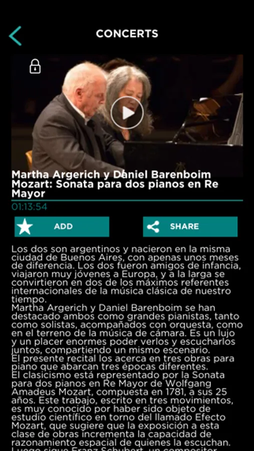 Enjoy the best concerts, operas, ballets y, anytime, anywhere, with the highest quality sound and image. Try us free for 1 month!