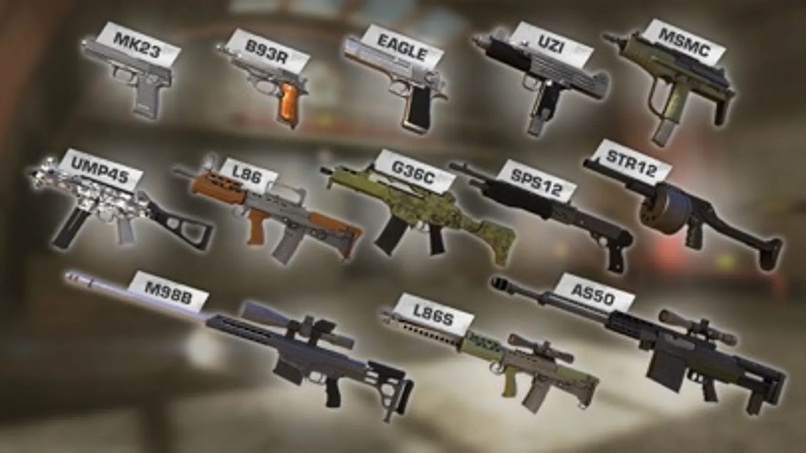 Arm yourself with highly detailed guns ranging from classic pistols to assault rifles, sniper rifles and many more!