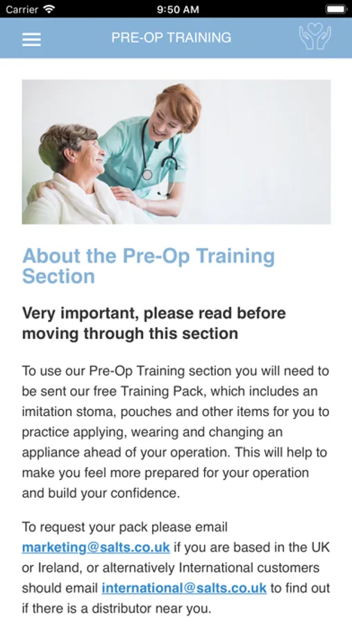 The Salts Healthcare Stoma Training App gives you all the information you need whether you've just found out you will need to have a stoma, recently had your operation, or are living with a stoma. It is also a useful tool for those caring for and supporting a relative or friend.
