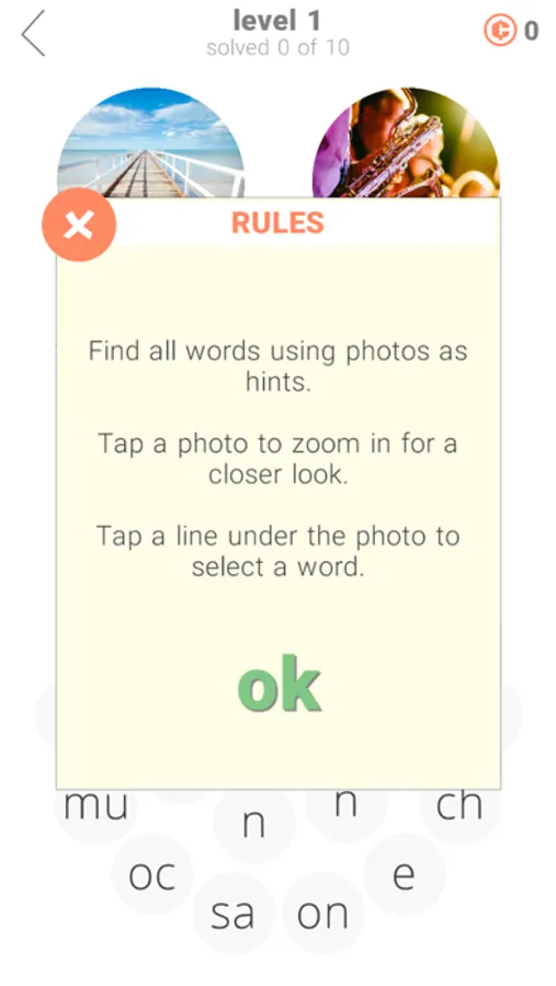 Clear the rings by guessing 20 words. Use photos as clues.