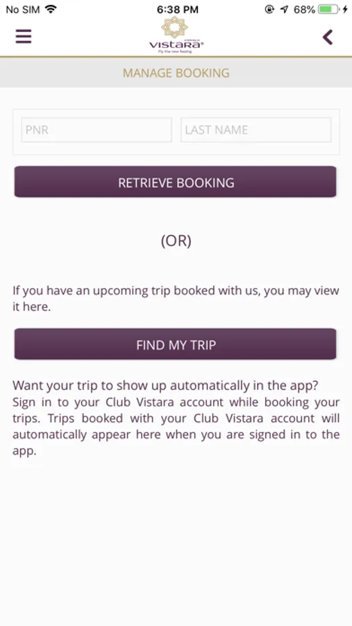 • Access Club Vistara: Log-in to your Club Vistara account and enjoy the benefits of the fastest rewarding frequent flyer program offered by the best domestic airline in India. Our unique points system allows you to earn CV Points based on the fare value of your flight ticket (base fare excluding taxes and fees). Enjoy increased baggage allowance, priority boarding, lounge access, exclusive deals and many more special benefits, including other perks that increase as you reach higher Club Vistara tiers.