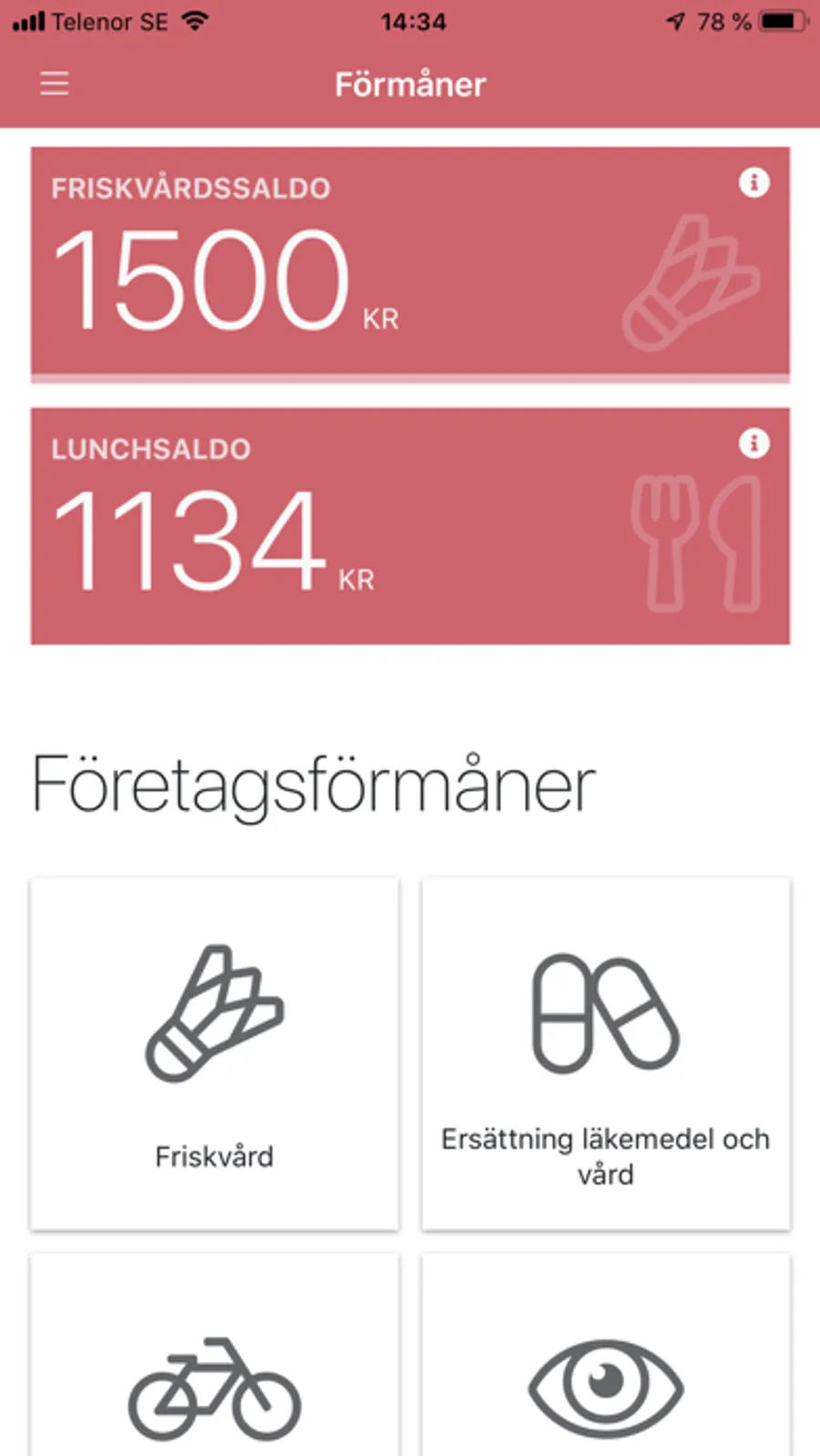 Via appen kan du se allt du är van att se i din förmånsportal, som exempelvis förmånssammanställning, lönespecifikationer eller information om friskvård och andra förmåner och erbjudanden.