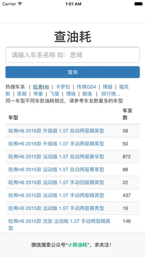 “查油耗”源自广受欢迎的油耗计算工具“小熊油耗”,根据一百万私家车主提供加油记录进行统计,为您买车和用车,提供最真实的油耗参考。
