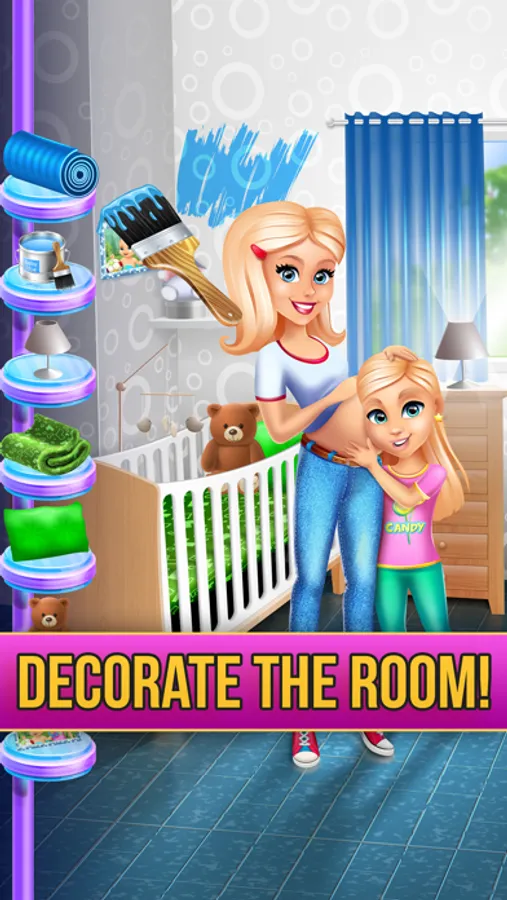Level 3 : Decorate with mommy and sister in the newborn baby boy room!