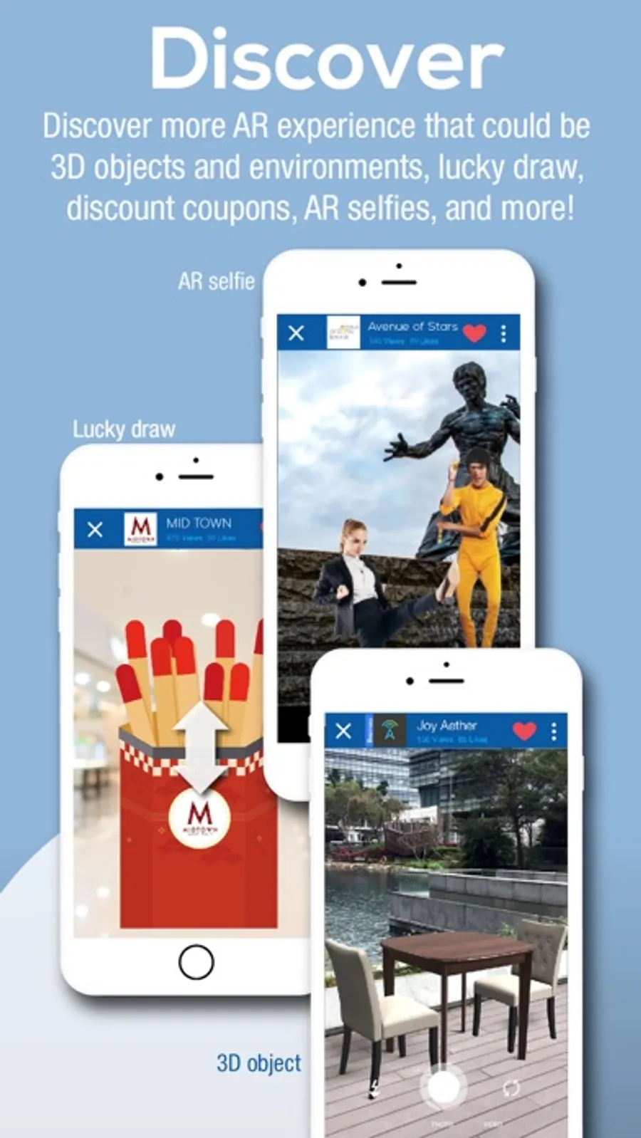 An interactive, fun and memorable experience! When you scan a poster, a billboard, or a product package that is SnapPop-enabled, we will work our magic and pop up interesting contents for you! You can discover 3D objects and environments (Augmented Reality / AR), lucky draws, trailer videos, and more!