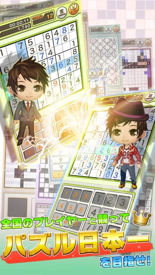 クロスワード、ナンプレ、お絵かきロジック、ナンクロなどの定番パズル9種類が40,000問以上遊べちゃいます!