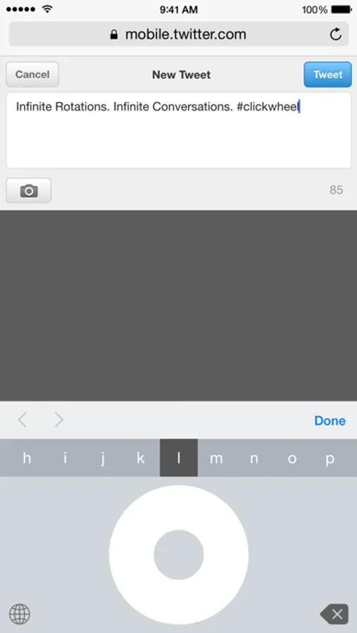 Each side of the wheel also has a function: tap the top to delete, left to move the cursor, right for a space, and bottom for capital letters!