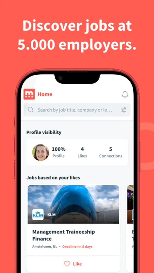 - Simply discover, like and apply to jobs from 5,500+ employers, from startups to multinationals like Deloitte, Heineken and Philips.