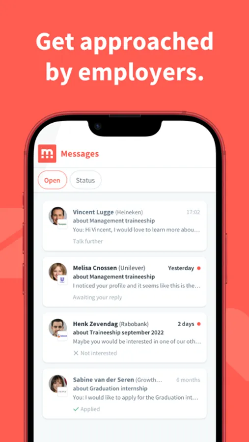 The Magnet.me app is also available to recruiters and companies looking for talent. Log in with your Magnet.me account or email us at support@magnet.me and we’ll get you started a.s.a.p.