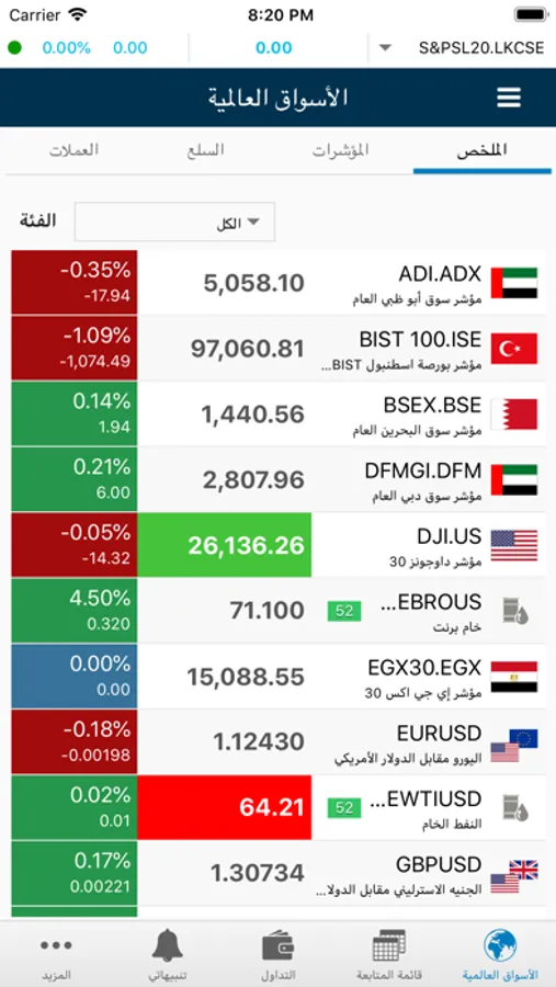 Monitor the price movements of key Market Indices, Commodities, and Currencies.