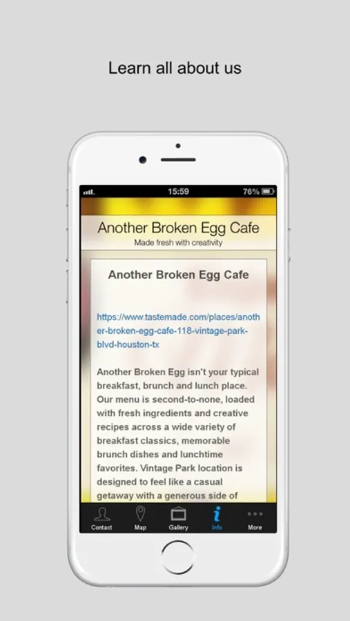 Another Broken Egg Café is an upscale breakfast, brunch and lunch restaurant located at 249 and Vintage Park located across from HEB.