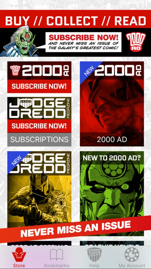 The legendary 2000 AD, the Judge Dredd Megazine and dozens of digital graphic novels are now available on your iPad or iPhone – plus incredible FREE comics to read now!