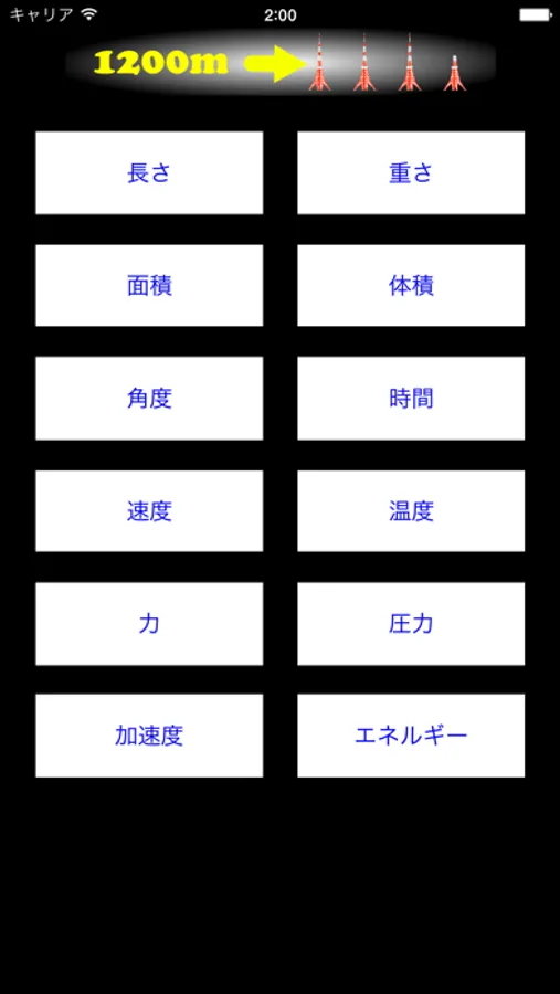長さ、重さ、面積、体積、角度、時間、速度、温度、力、圧力、加速度、エネルギー