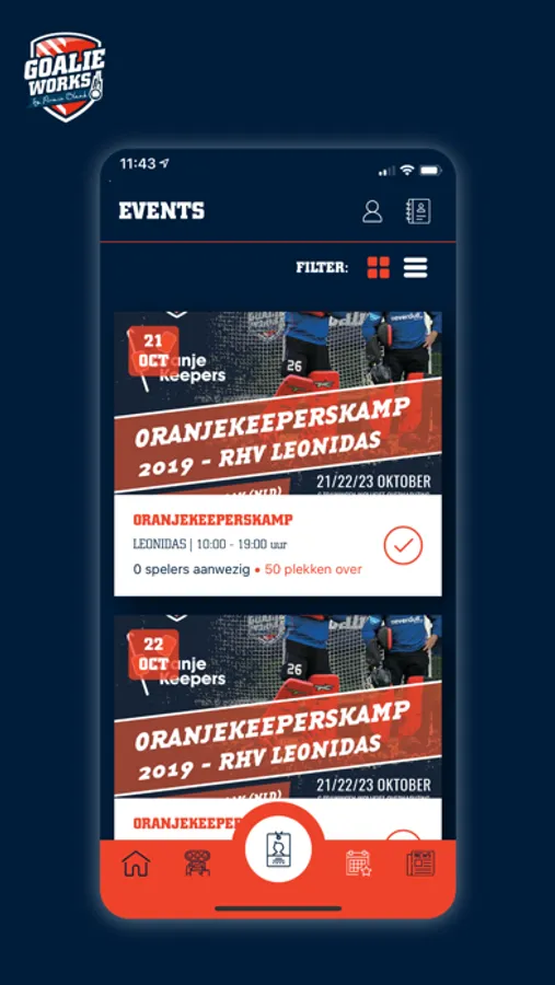 Dit is de app voor alle keepers die trainen bij een van de keepersscholen van GoalieWorks. Via deze app kun je: