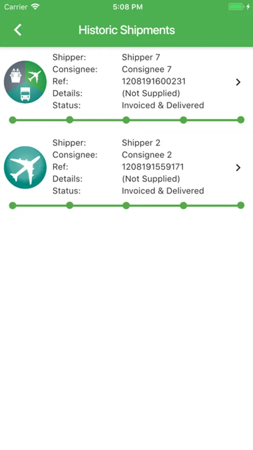 Icons easily identify the shipment mode, with your Shipment Reference number for easy identification.