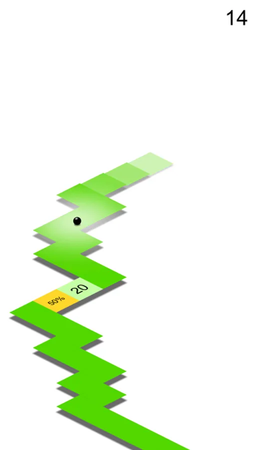 This time, our ball changes its running direction and starts a new zigzag journey. The game control is still very easy to start. Taping the screen to change moving direction. Don't fall off the path and stay in the path as long as you can.