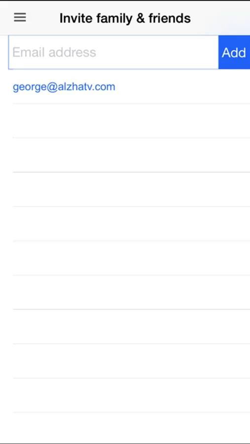 AlzhaTV app facilitates communication among the person with Alzheimer’s and other dementia (PWD) and their family members. AlzhaTV enables family members to send videos and select the frequency of display for each video. The loved one (PWD) sees these video on the personal television screen in a looped fashion creating instant communication without having to use any technology. AlzhaTV enables loved one to send message to family members with the help of caregiver.