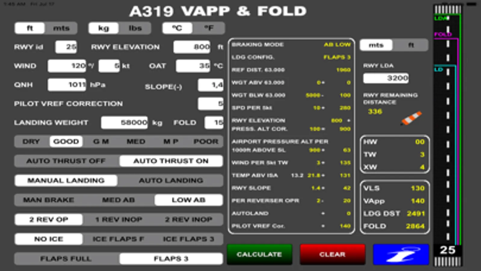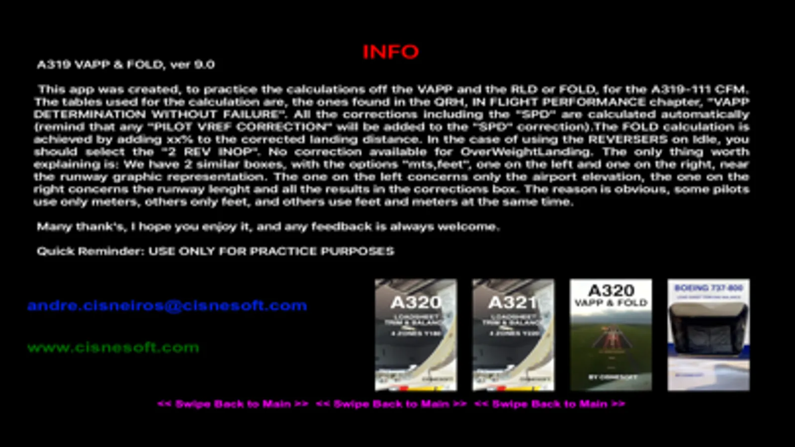 This app was created, to practice the calculations off the VAPP and the RLD or FOLD, for the A319-111 CFM.
