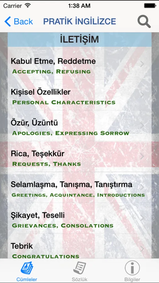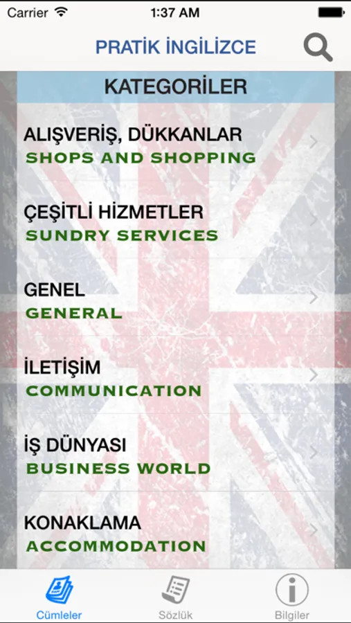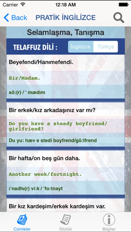 Son olarak çok beğeneceğinizi düşündüğümüz, markette hiç bir uygulamada olmayan, hem İngilizce sesli hem de Türkçe sesli olarak telafuzları dinleyebilme özelliği ile İngilizce anlaşabilmek artık sorun olmayacak.