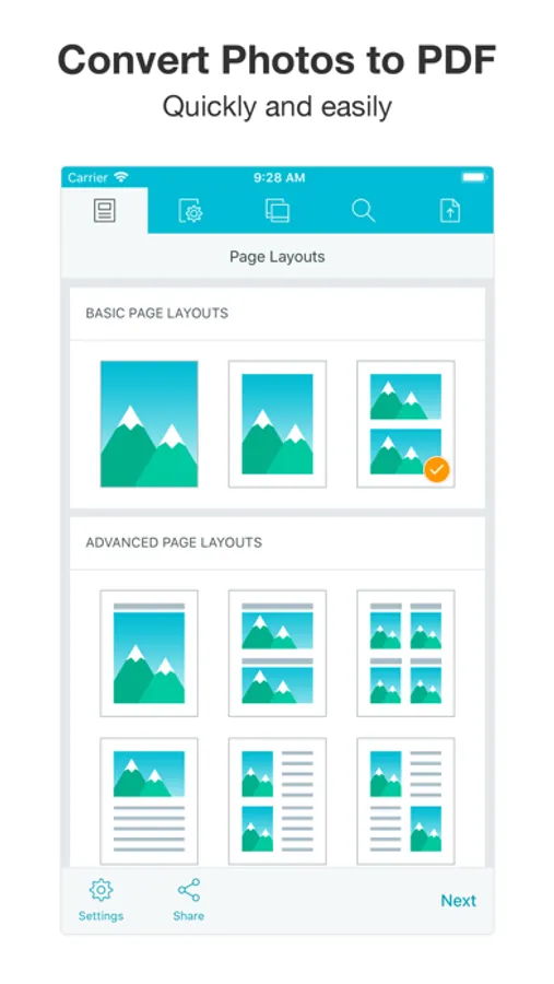 Simple and intuitive interface makes PDF Photos the easiest JPG to PDF Converter and Photo Grid App you’ll ever use!