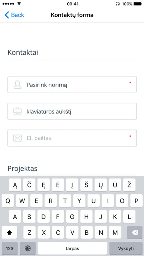 • Klavišų eilė klaviatūros viršuje su visomis lietuviškomis raidėmis („ą“, „č“, „ę“, „ė“, „į“, „š“, „ų“, „ū“, „ž“).