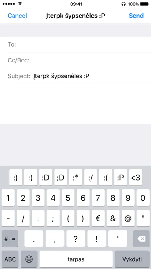 • Įdiegus klaviatūrą, ji veiks visose Jūsų naudojamose programėlėse (naršyklėje „Safari“, el. pašto programoje „Mail“, įvairiose pokalbių bei socialinių tinklų programose, ...)