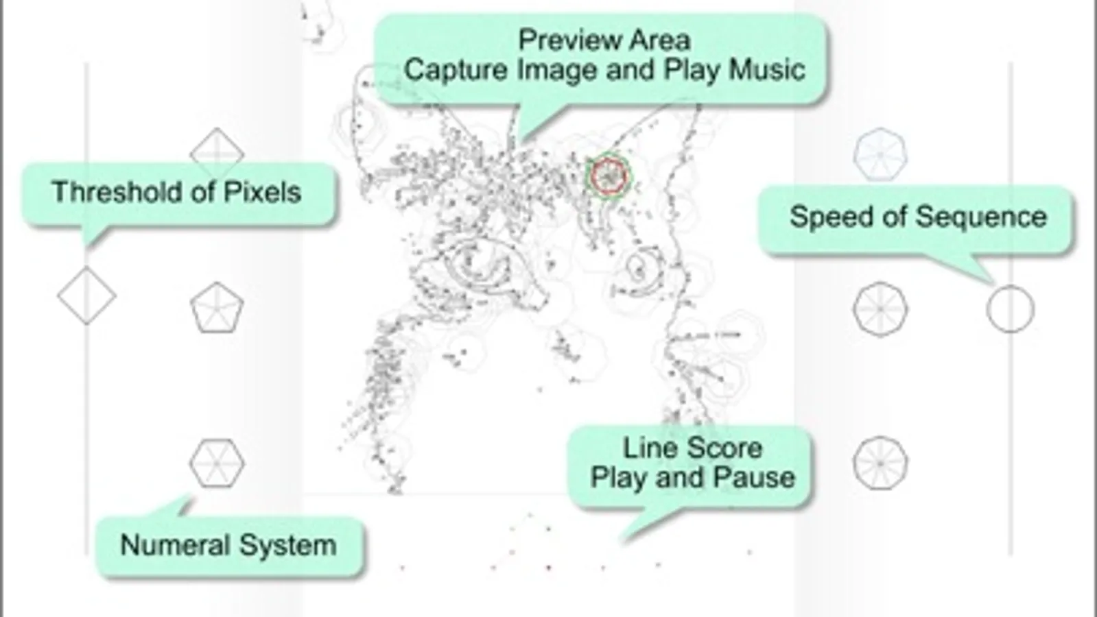 Tap the preview area and music will play. A change of the speed and interval of selected pixels makes another type of music and pattern.