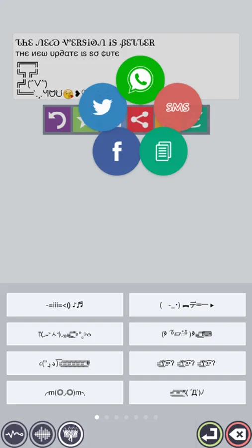 and you can share your text (Facebook, twitter , whatsapp, sms) or copy it to clipboard.