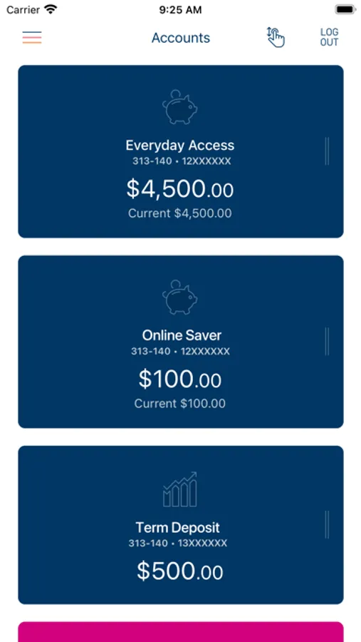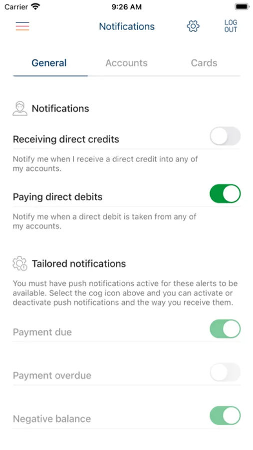 • Set up and manage Round UPs. Have card purchases round up to the nearest pre-set amount, then transferred to a chosen account.
