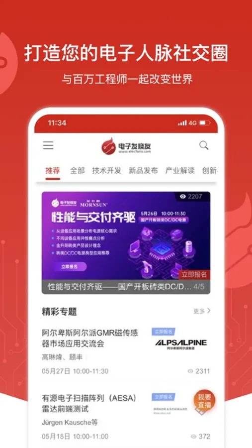 主要功能有:最新电子新闻、电子工程师社区、开发板试用、pdf datasheet资料查询、电子发烧友学院和直播等。