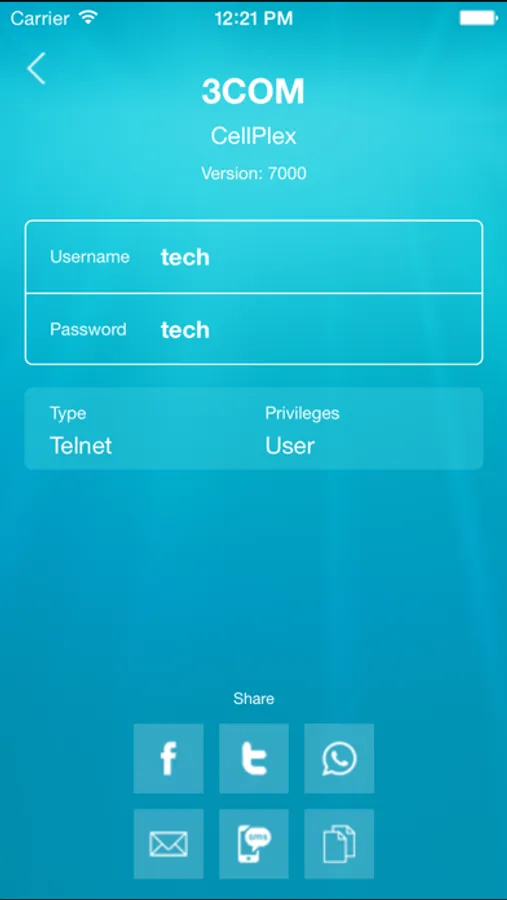 * Share the details of your router via Facebook, Twitter, Email, SMS or Whatsapp