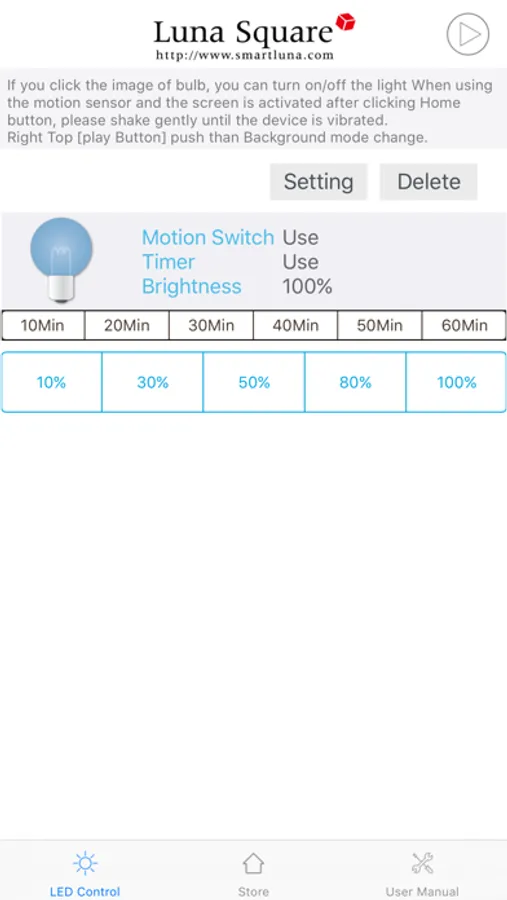 This app allows you to control ON/OFF control, brightness control, and timer settings using your smartphone after purchasing Smart Luna related products.