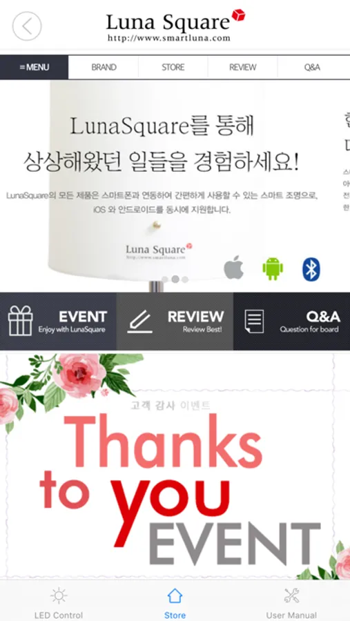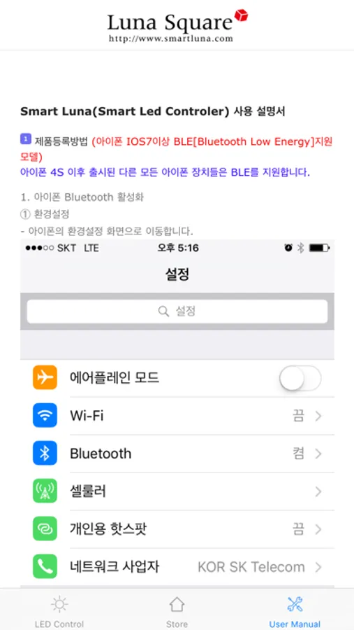 After installing the Smart Luna app, power up the product and automatically store and install the product when approaching the nearby 15M or so within 10 seconds. (Enable Bluetooth on smartphone, screen display ON)
